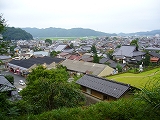 出石の町から城を見ています。 急な階段が続きますが、登る価値ありです。 |